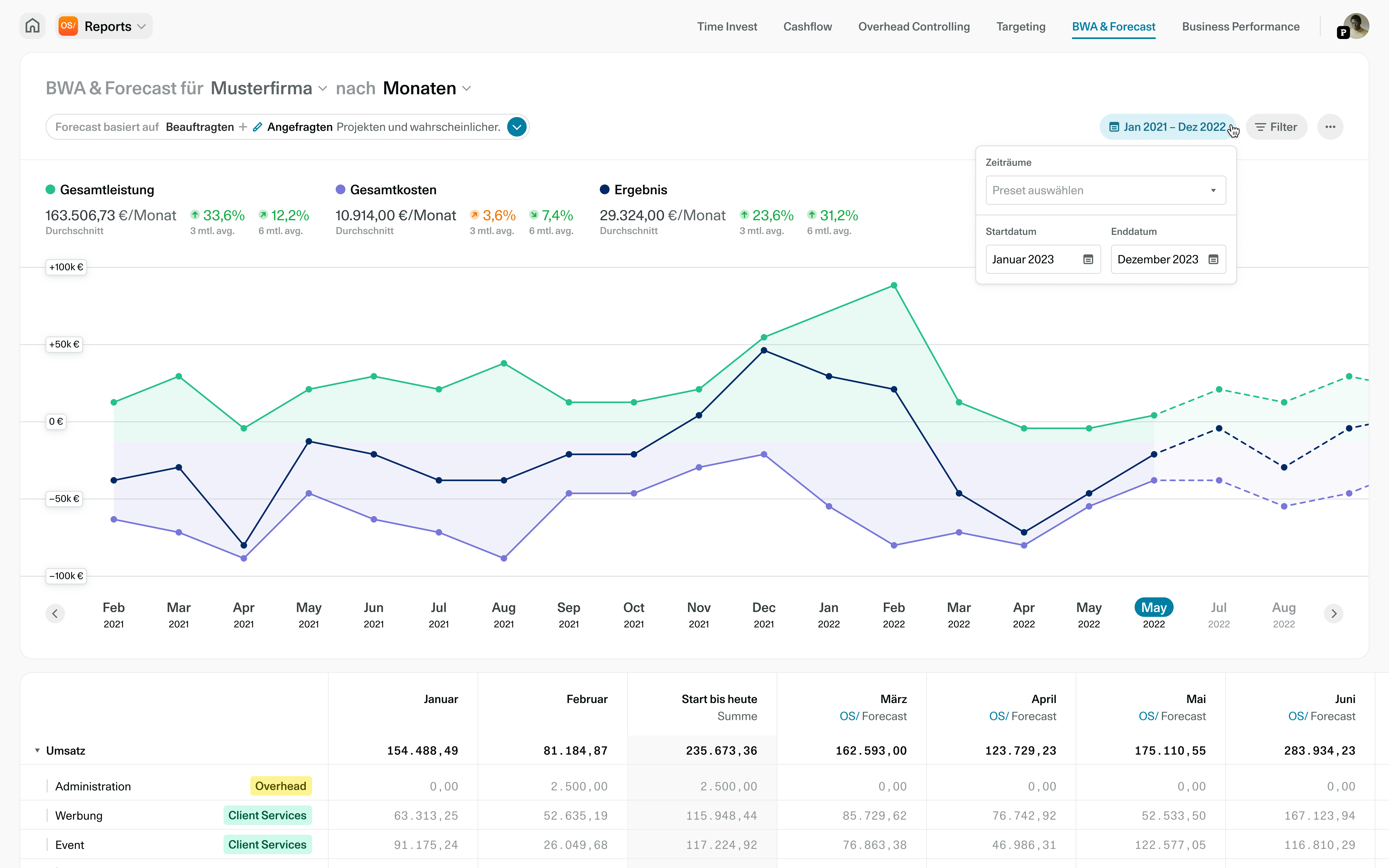 Der OS/ Forecast sorgt dafür, dass ihr diese Ausgaben jederzeit im Griff habt und unliebsame Überraschungen vermeidet.