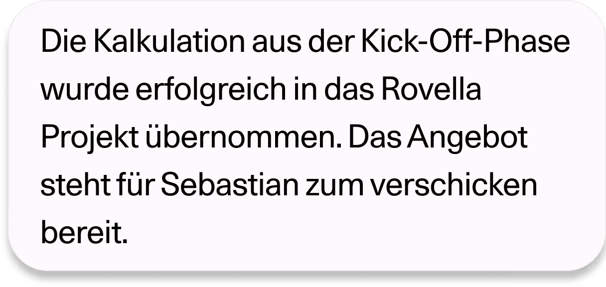 Ohne aktiv etwas machen zu müssen, konnte Ben 10 Minuten vor dem Boarding noch schnell sein neues Projekt für Rovella anlegen.