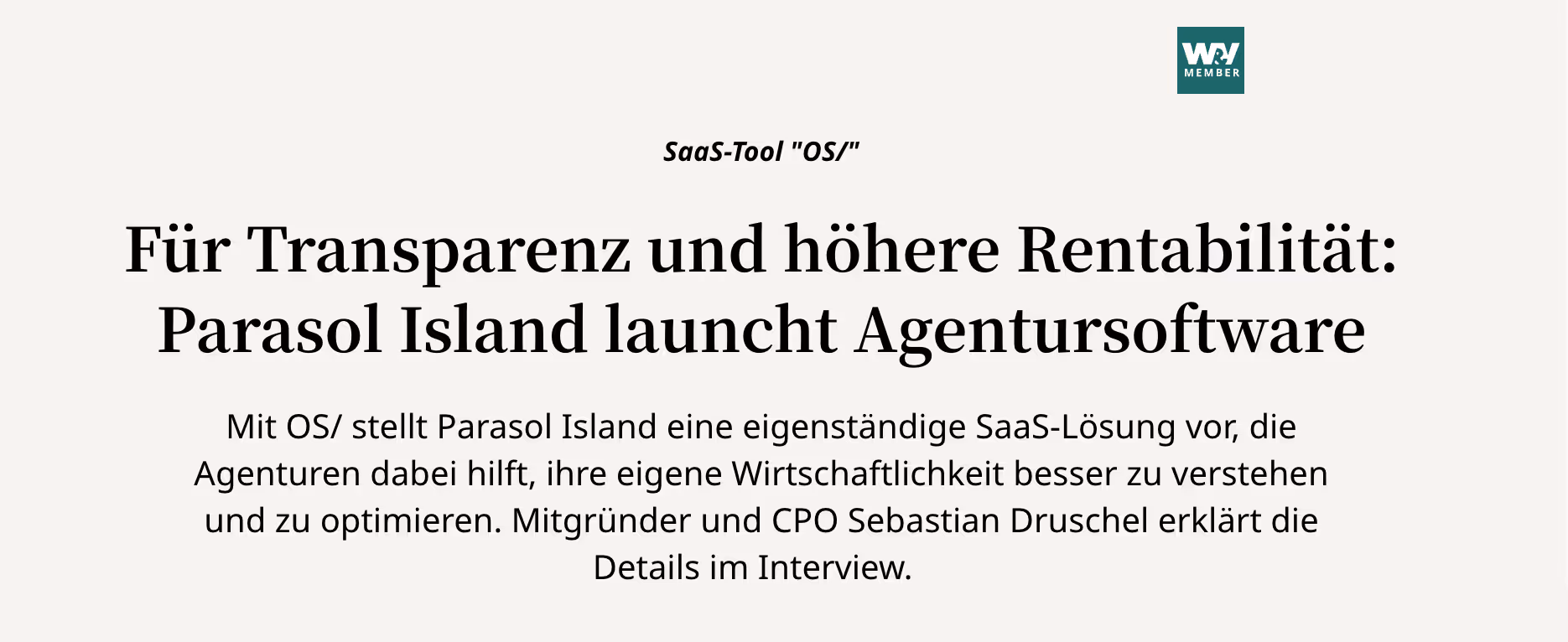 Im Artikel "Für Transparenz und höhere Rentabilität: Parasol Island launcht Augentursoftware" aus November 2024 von W&V könnt ihr mehr über die Entstehung von OS/ erfahren.