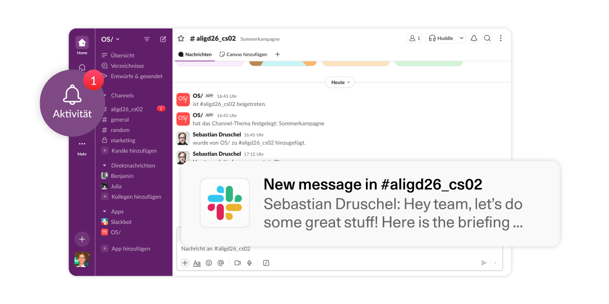 Connect OS/ to your Slack workspace now and see how easy modern project controlling can be.